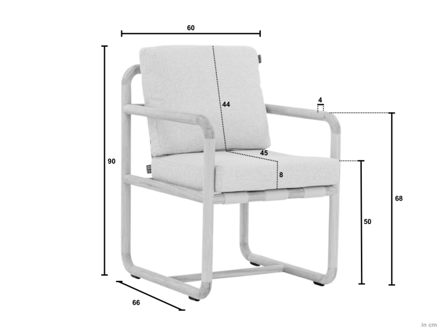 Die Gesamtbreite des Apple Bee Dolce Armlehnstuhls beträgt ca. 60 cm, die Gesamttiefe ca. 65 cm und die Gesamthöhe ca. 83 cm. Die Sitzhöhe liegt bei ca. 40 cm. Außerdem hat dieser Gartenstuhl eine Armlehnenhöhe von ca. 68 cm und ein Gewicht von ca. 10 kg, was eine einfache Positionierung und Bewegung ermöglicht.