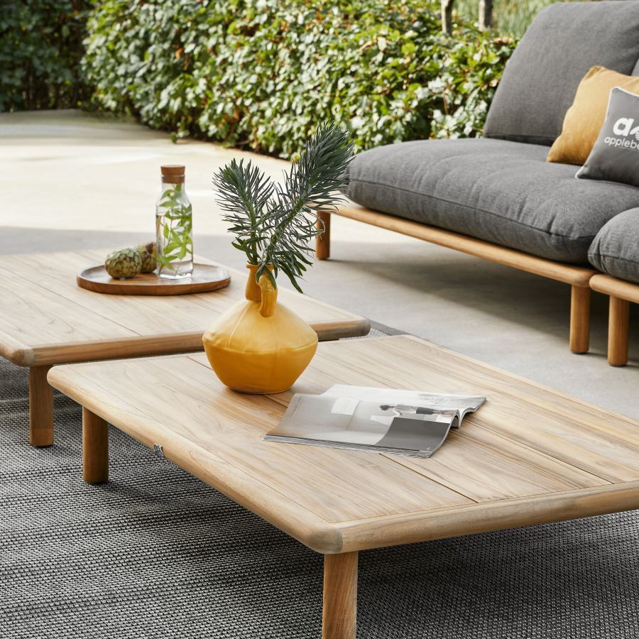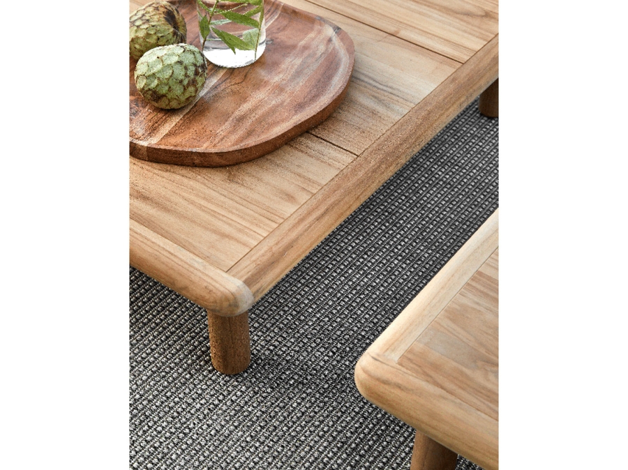 Der Sling Loungetisch besticht durch die Nutzung von hochwertigem Teakholz. Diese Holzart ist berühmt für ihre Beständigkeit und Widerstandsfähigkeit gegenüber Wettereinflüssen. Die natürliche Farbe des Teakholzes integriert sich nahtlos in jede Gartenlandschaft und unterstreicht die Ästhetik des Möbels. Darüber hinaus ist Teakholz besonders pflegeleicht, was es zu einer idealen Wahl für jede Jahreszeit macht.