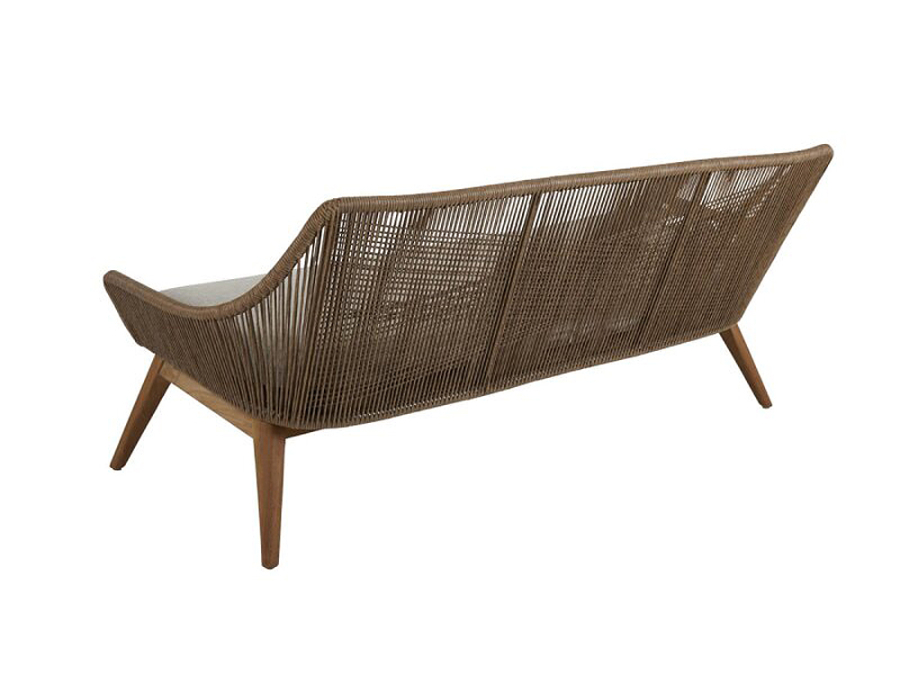 Das 2,5-Sitzer Sofa von Brafab Hassel besteht aus erstklassigen Werkstoffen. Das widerstandsfähige Polyrattan-Geflecht bietet nicht nur ein ästhetisches Aussehen, sondern zeichnet sich auch durch seine Beständigkeit gegen Witterung und UV-Strahlung aus, was es perfekt für den Einsatz auf Balkonen oder Terrassen macht. Das robuste Gestell ist aus Teakholz, während die Polsterung in sanftem Sandton mit einer wasserabweisenden Hülle aus 100% Polypropylen überzeugt.