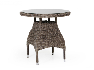 Ein stabiles, dabei aber leichtes Aluminiumgestell bildet das Fundament dieses Tisches, welcher zusätzlich mit einem hochwertigen, New Rustic-farbigen Polyrattan-Gewebe versehen ist. Dadurch ist der Tisch nicht nur äußerst beständig gegenüber Naturgewalten, sondern erstrahlt auch in einem attraktiven Design. Die aus gehärtetem, klaren Glas bestehende Tischplatte verleiht dem Tisch eine edle Modernität und bietet genug Raum für gemeinsame Essen mit Freunden oder der Familie.