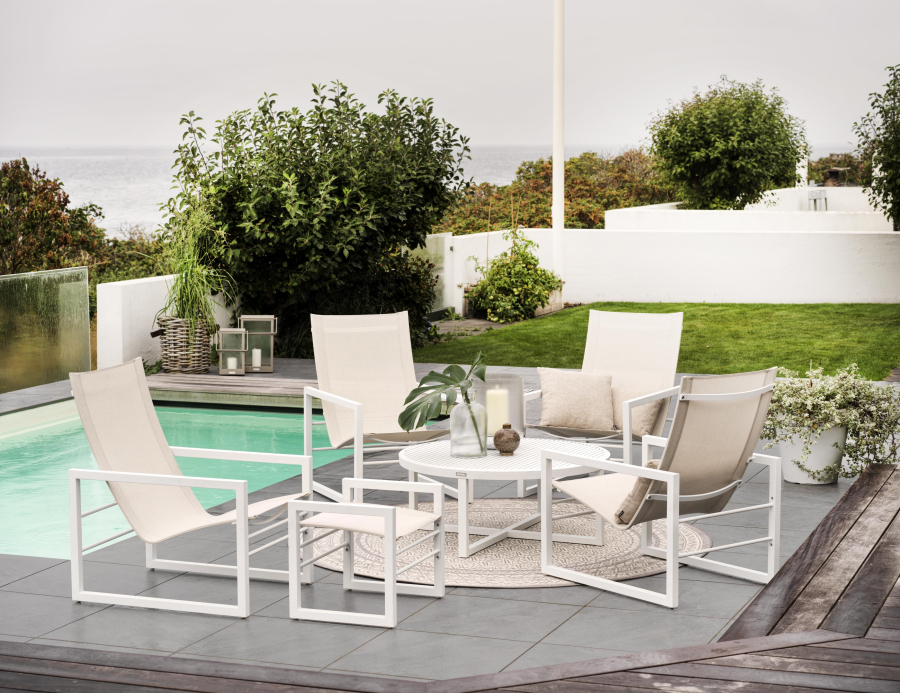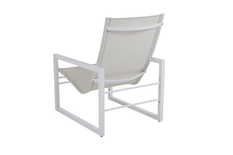 Das widerstandsfähige und zugleich stilvolle Sitzmöbel in der Modefarbe Weiß besticht mit einem Aluminiumgestell, das sich durch seine Leichtigkeit auszeichnet. Die matte weiße Pulverbeschichtung des Gestells vermittelt eine besonders noble Anmutung.