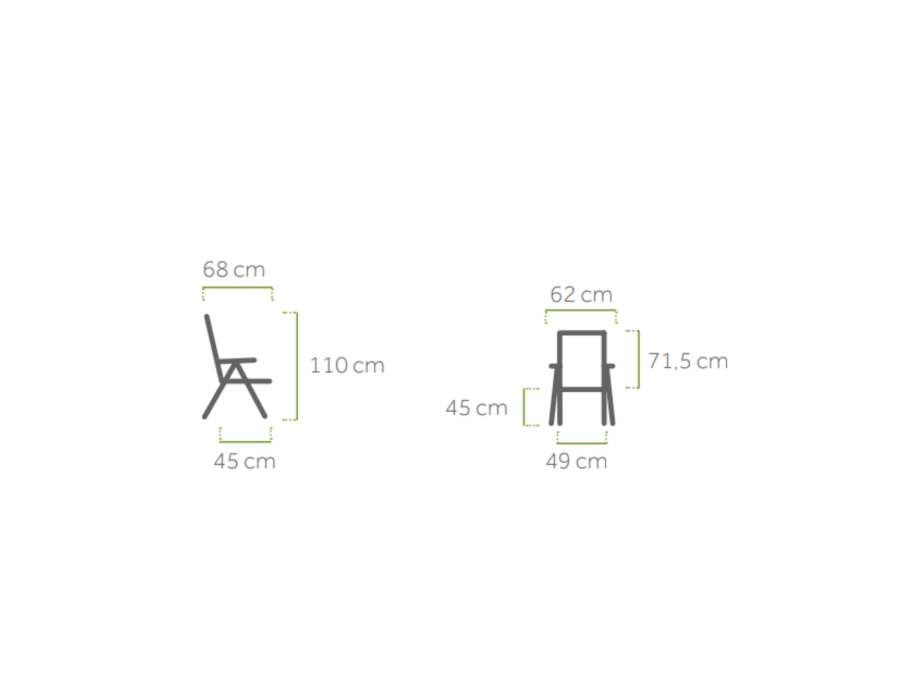 klappbar, 5-fach verstellbar, witterungsbeständig, UV-beständig, pflegeleicht, belastbar bis 110kg