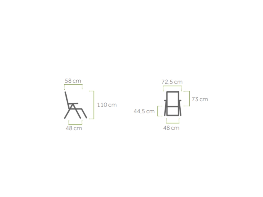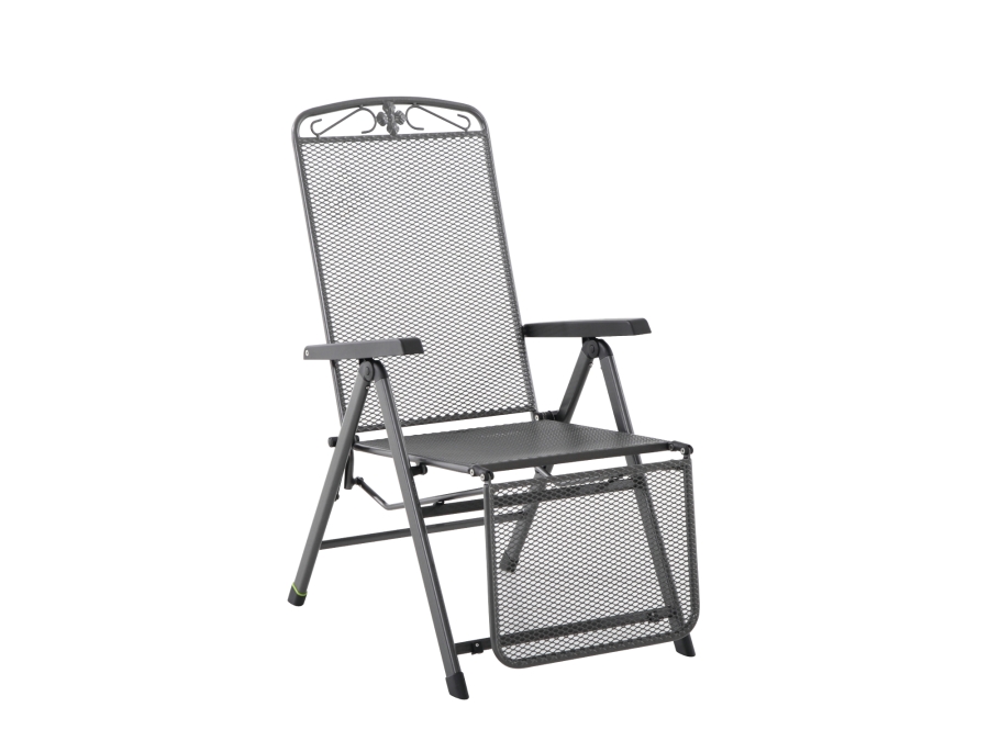 klappbar, witterungsbeständig, UV-beständig, Rückenlehne 5-fach verstellbar, max. Belastung 110kg, pflegeleicht, florales Dekorelement in der Rückenlehne