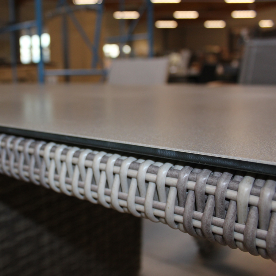 Ploß Sahara Diningtisch 220x100cm Geflecht-Glas Beige-Grau-Meliert-Light Grey