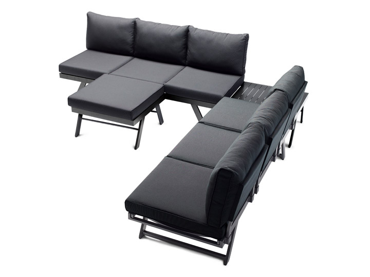 Die Sieger Auckland Loungegarnitur bietet vielseitige Anpassungsmöglichkeiten mit bis zu fünf verschiedenen Positionierungen. Egal ob Sie eine traditionelle Gartenbank bevorzugen oder eine Liege in unterschiedlichen Neigungen, mit einem simplen Steckmechanismus und Raster lassen sich die einzelnen Elemente umwandeln. Darüber hinaus können der Loungetisch und der Hocker mit oder ohne Auflage als ein vielfältiges Möbelstück verwendet werden.