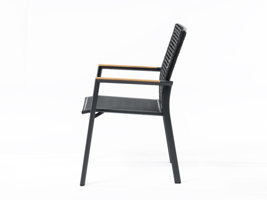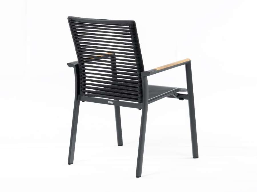 Zebra Fly Rope Stapelsessel graphite, Armlehnen Teak