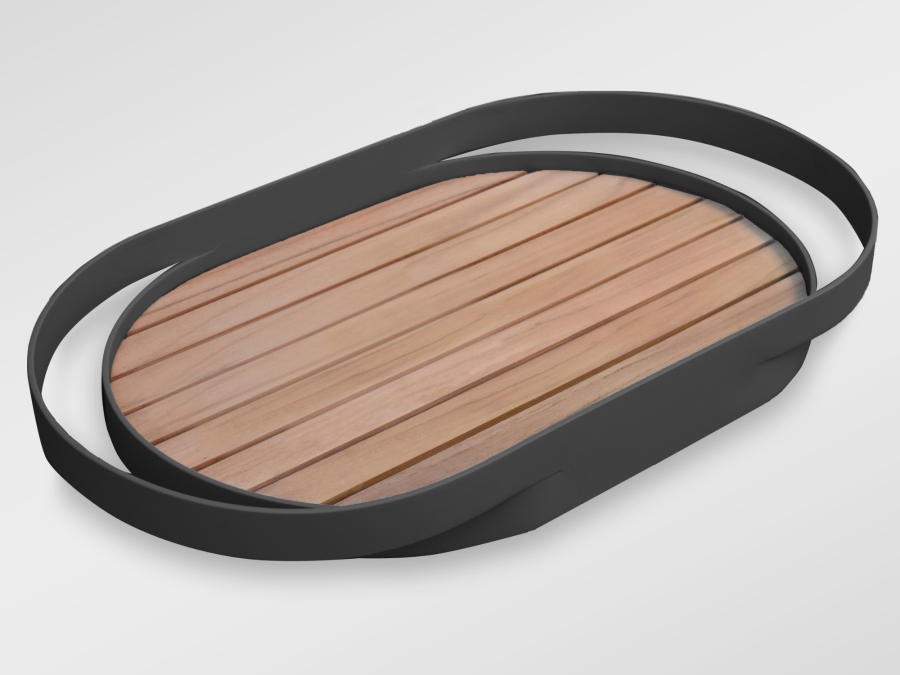 Zebra Give Tablett graphite 56,6x32cm Aluminium graphite mit Teakboden