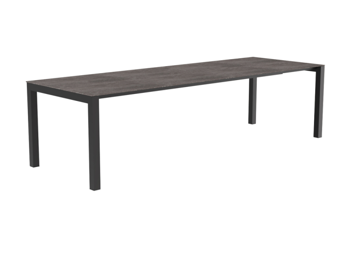 Der Zebra Ohio Gartentisch ist aus erstklassigen Materialien gefertigt. Das Gestell aus pulverbeschichtetem Aluminium steht nicht nur für ein visuelles Highlight, sondern auch für Stabilität. Die Tischplatte aus High Pressure Laminate (HPL) in Onyx-Optik vereint Haltbarkeit mit Ästhetik, wobei die graphitfarbene Gestaltung des Untergestells sich nahtlos in das Design eingliedert und das Erscheinungsbild des Gartentisches abrundet.