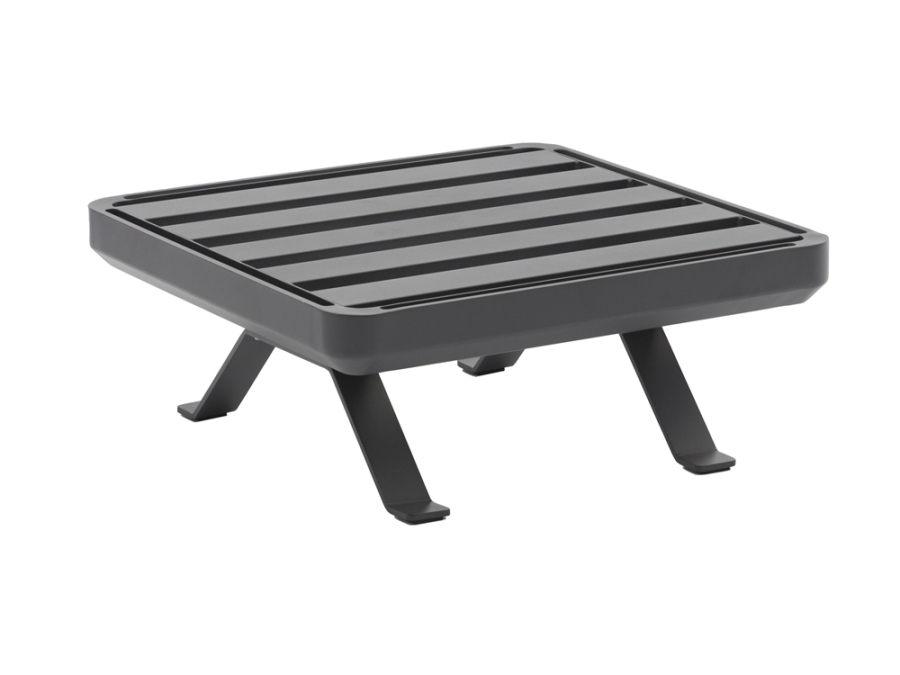 Der Hocker besticht durch seine langlebige Konstruktion, die auf einem Aluminiumrahmen basiert und mit einer graphitfarbenen Pulverlackierung versehen ist. Die Füße sind aus edelstahlpulverbeschichtetem Material gefertigt und verleihen dem Möbelstück nicht nur Festigkeit, sondern auch eine lange Lebensdauer.
