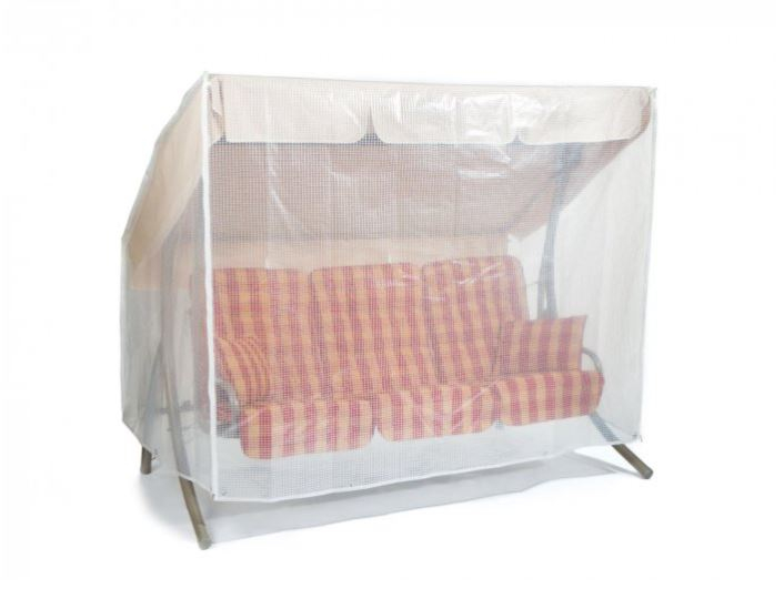 Die Maße der Schutzhaube betragen eine Breite von circa 230 cm, eine Höhe von 192 cm an der Vorderseite sowie 154 cm an der Rückseite und sie erstreckt sich über eine Tiefe von 140 cm. Damit ist gewährleistet, dass die Zebra Hollywoodschaukel Aluminium Deluxe vollständig bedeckt und effektiv geschützt wird.