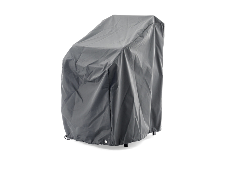 Mit der Sieger Schutzhülle für Stapelstühle schützen Sie Ihre Gartenmöbel auf ideale Weise. Gefertigt aus 100% Polyester, bietet sie hervorragenden Schutz vor Witterungseinflüssen. Das elegante, graue Design rundet das Bild ab.