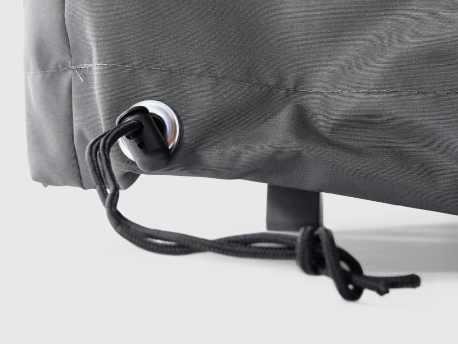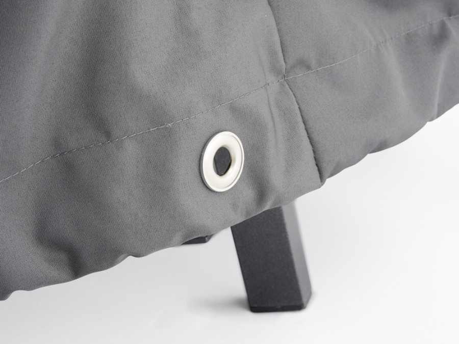 Die Schutzhülle besteht aus 100% hochqualitativem, robustem und haltbarem Polyester Gewebe. Mit einem leichten Gewicht von lediglich 1,5 kg ist sie einfach zu handhaben. Ihre hohe Reißfestigkeit gewährleistet extra Schutz für Ihre Möbel. Integrierte Befestigungsösen garantieren festen Sitz auch bei windigem Wetter.